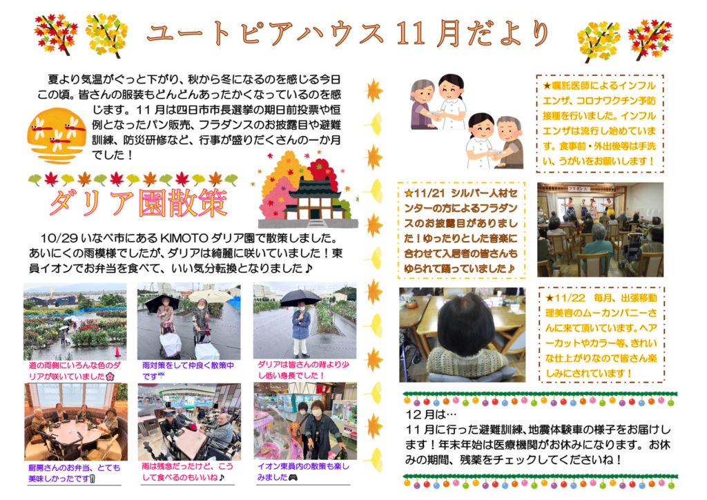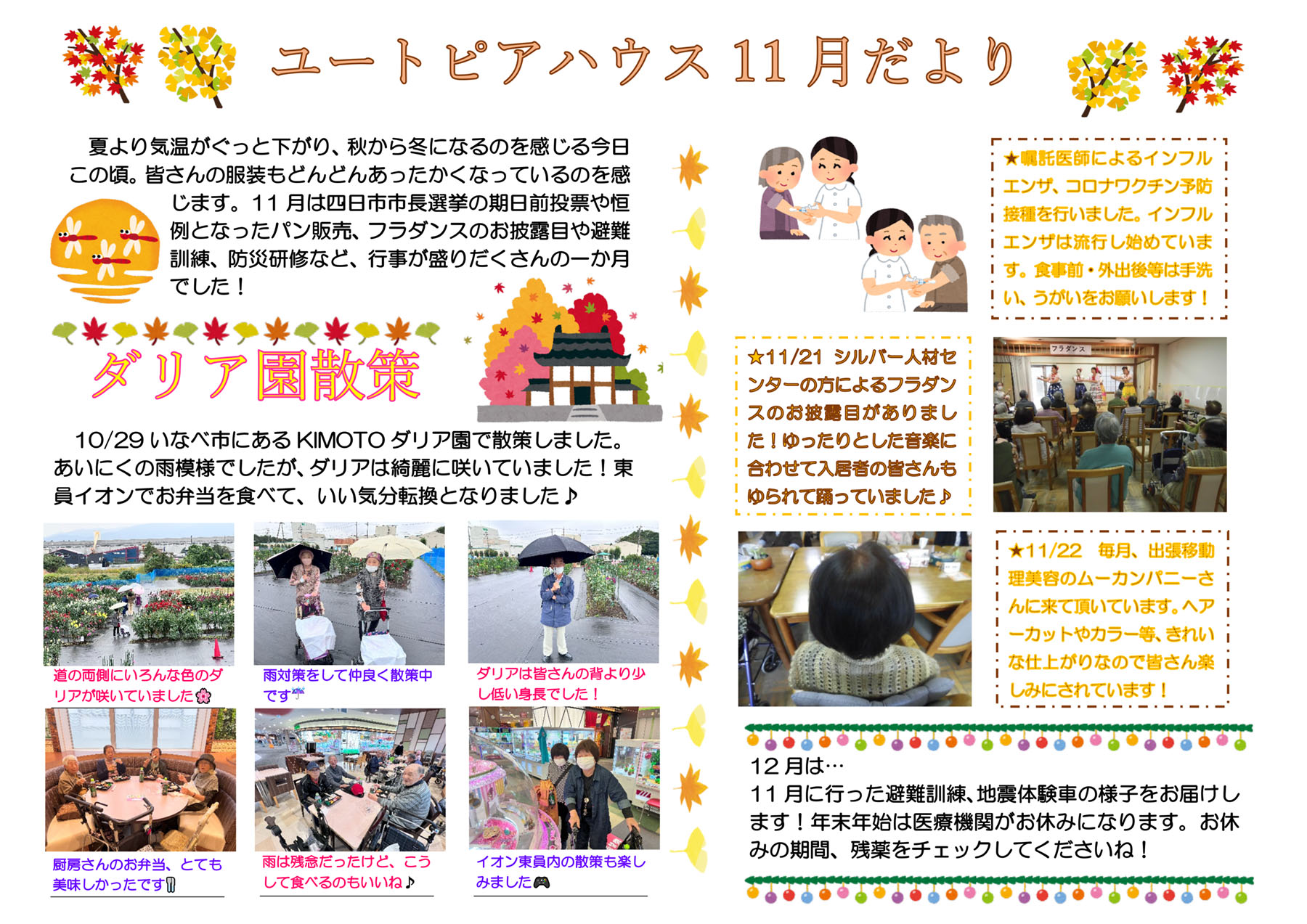 社会福祉法人ユートピアでは、四日市市内でケアハウス在宅介護サービスセンター・短期入所生活介護施設・在宅介護支援センターを設けております。