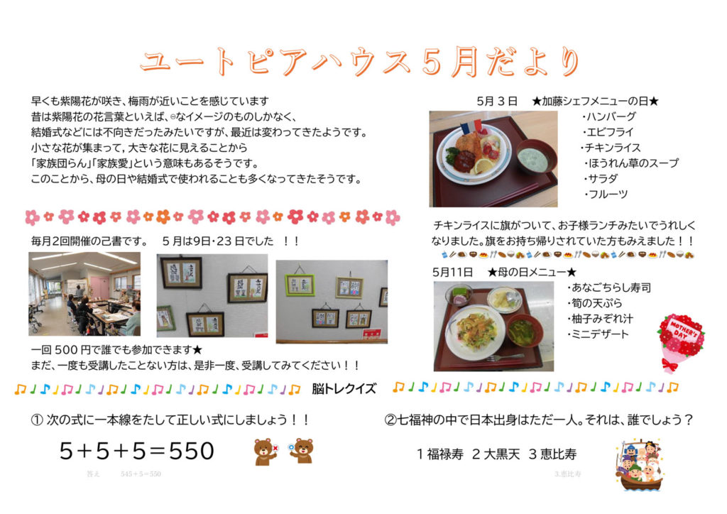 ユートピアハウス5月だよりを発行いたしました。