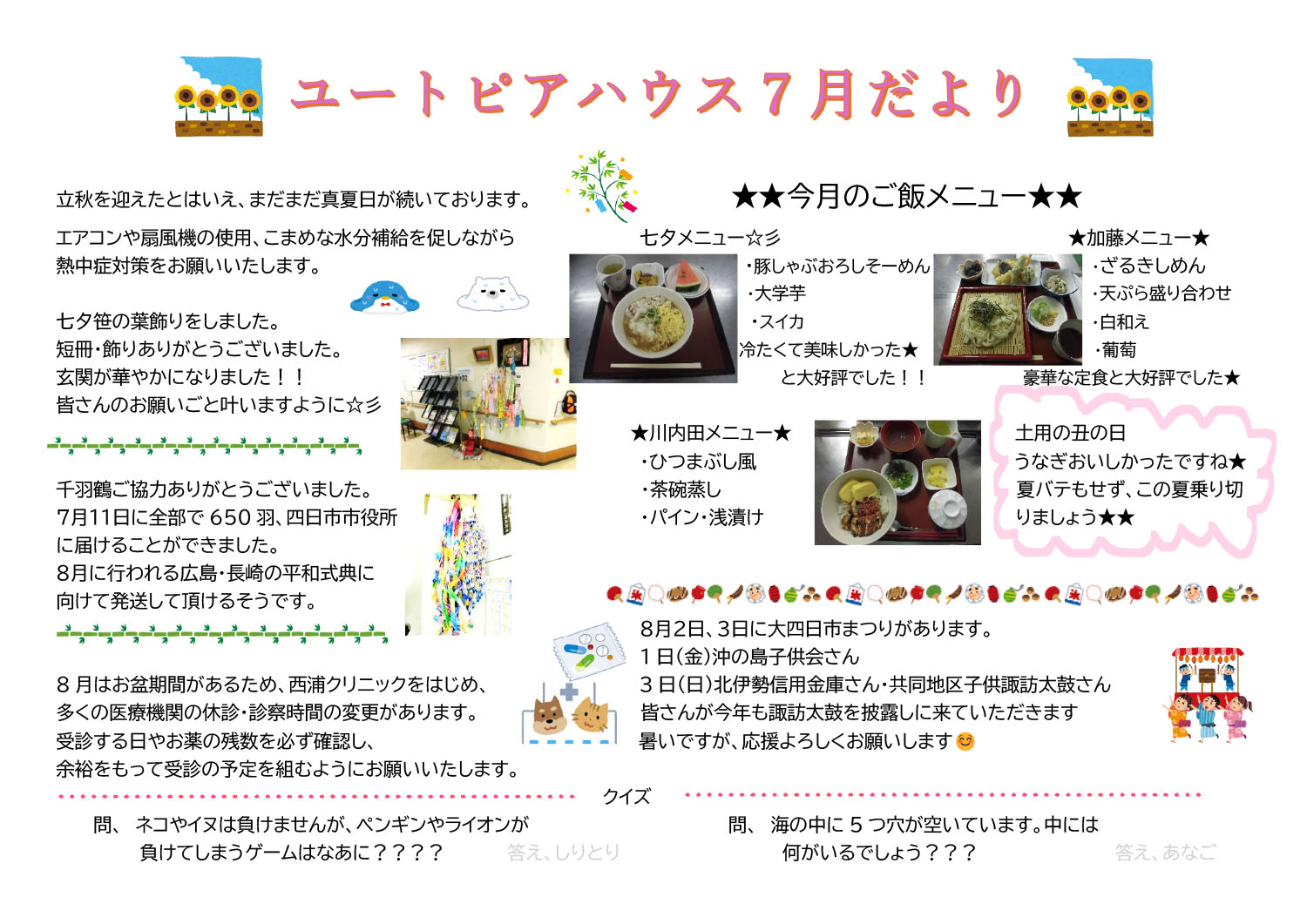 ユートピアハウス7月だよりを発行いたしました。